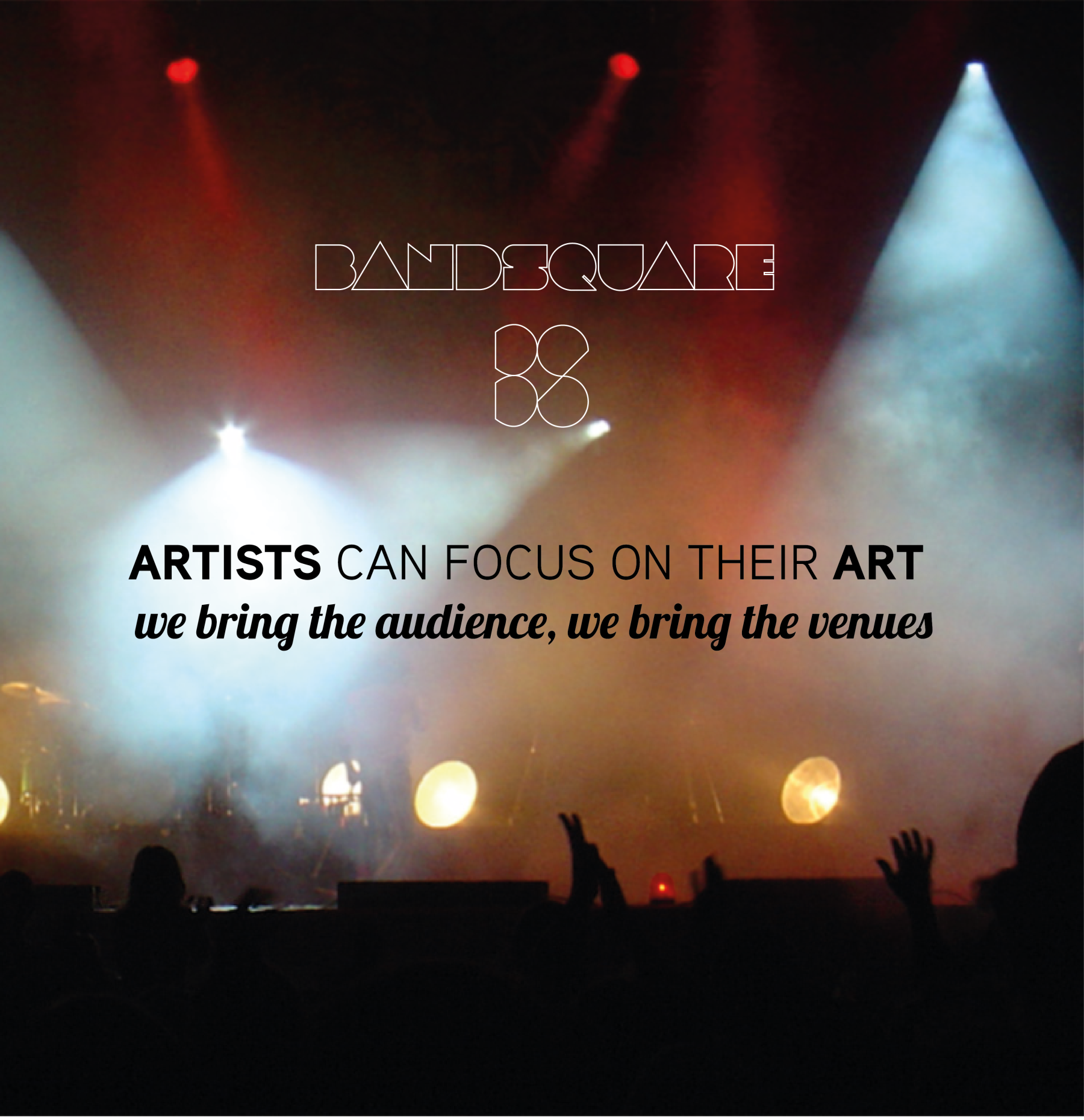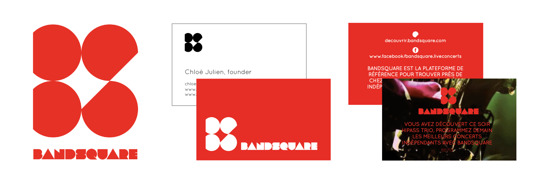 En 2013 Bandsquare est une start up qui propose une plateforme unique qui hisse au même niveau artistes émergents, fans, et salles de concerts. À une infinité d’artistes, à des utilisations multiples de sa plateforme, nous opposons une image simple pour la marque.