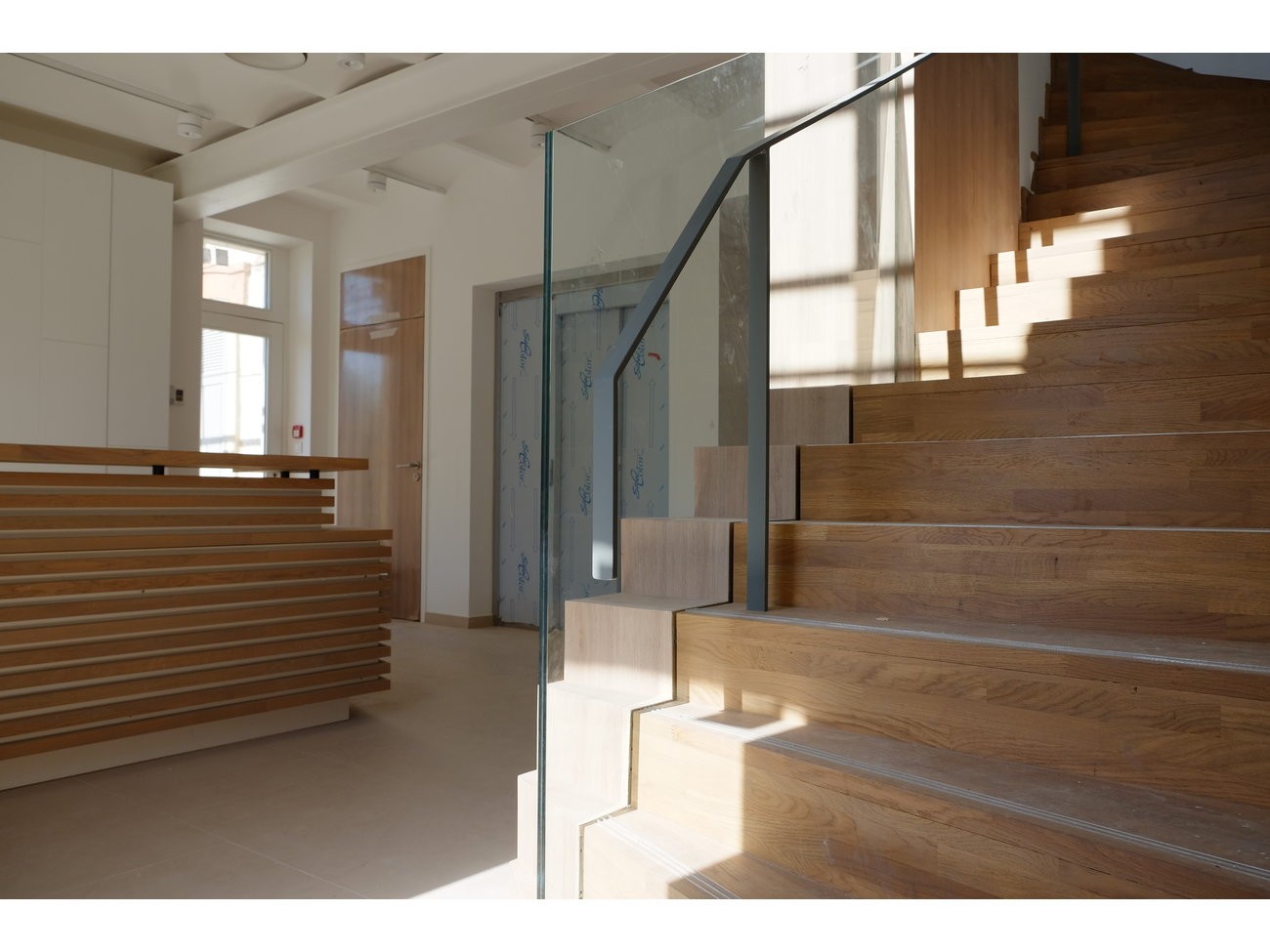 La cave a été creusée davantage pour retrouver un espace d’exposition, un ascenseur a été implanté et les accès et