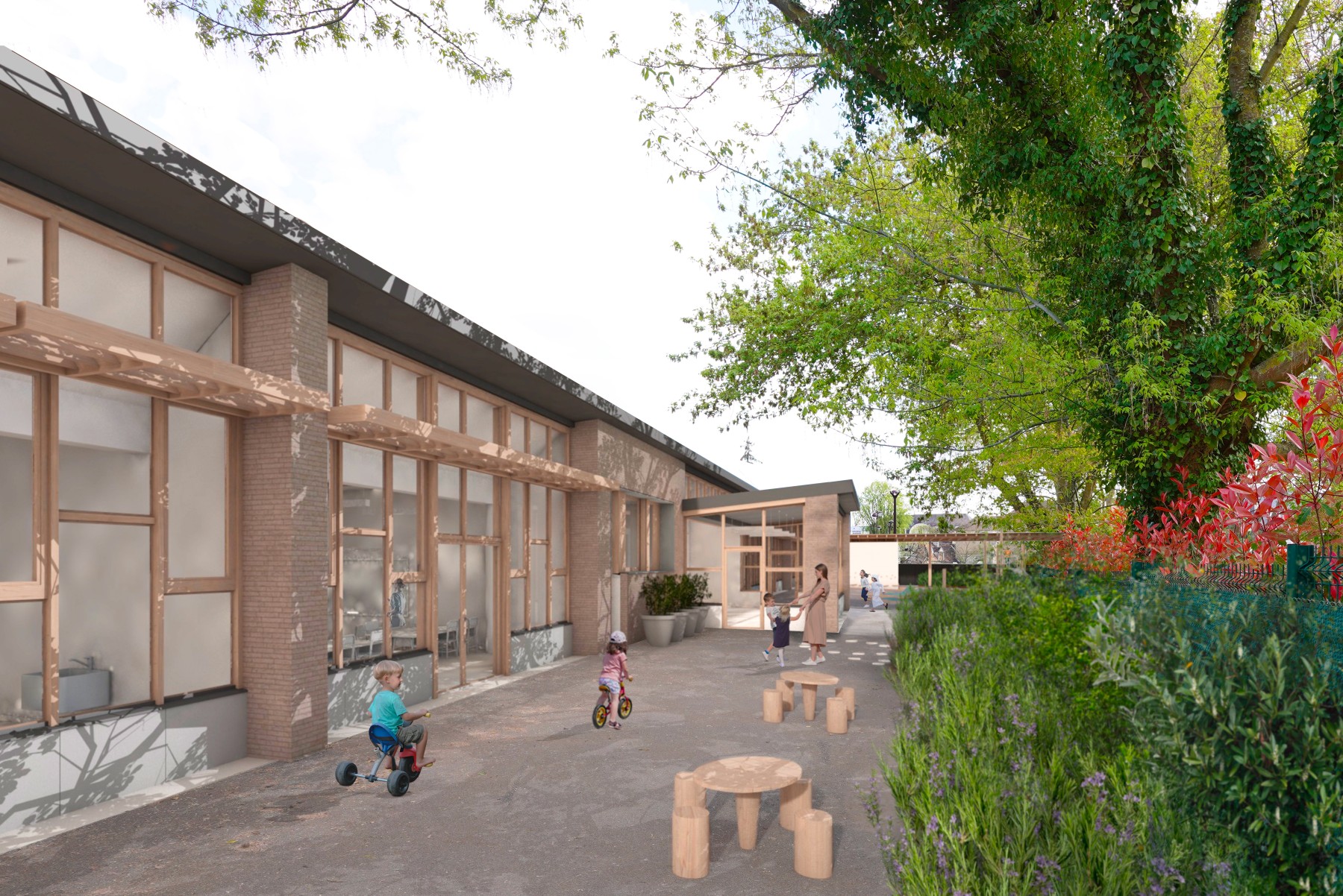 La création d’un préau se reliant par son écriture architecturale à celle de l’école réhabilitée permettra de créer un nouvel espace couvert mais ouvert nécessaire au bon fonctionnement de l’école.