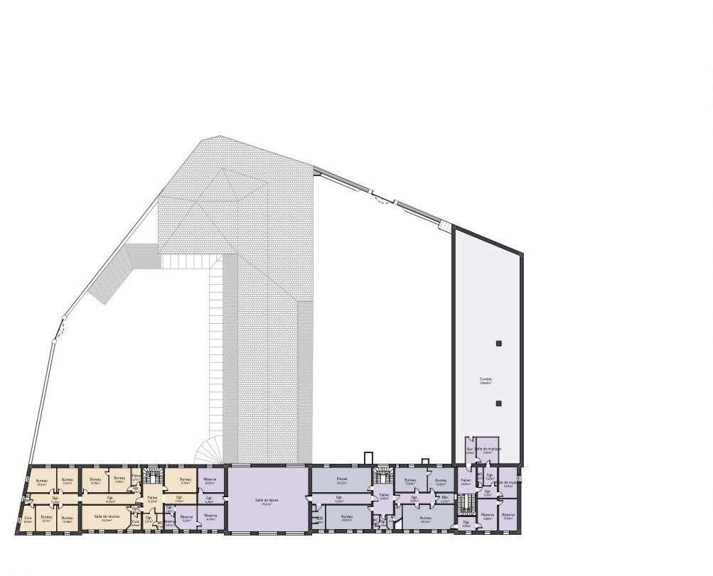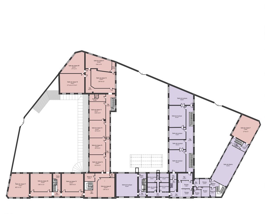 Étude de programmation et de faisabilité pour l’implantation d’une école dans un ancien conservatoire de musique à Pantin. Réflexion autour des programmes et leur articulation qui s’implante dans un bâtiment existant.
