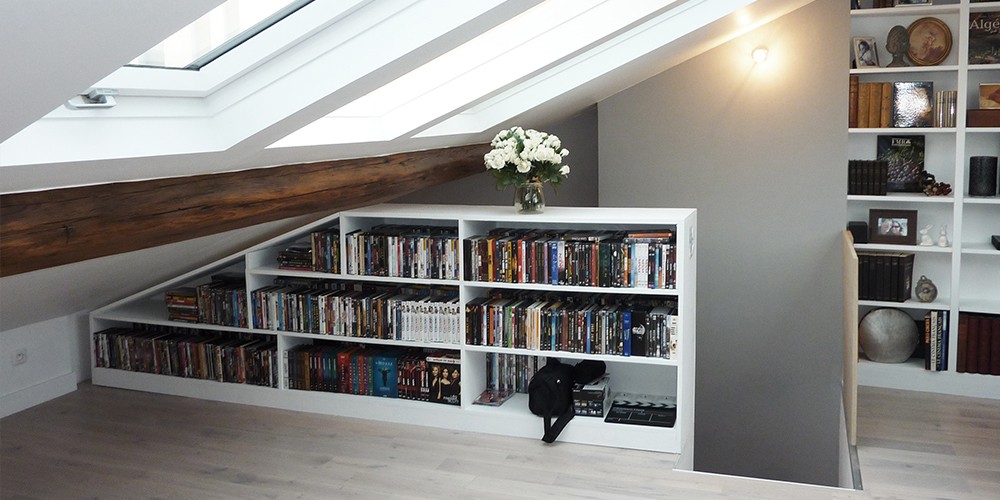 Transformation d’un appartement à Boulogne, avec aménagement des combles, restructuration et conception de mobilier intégré.