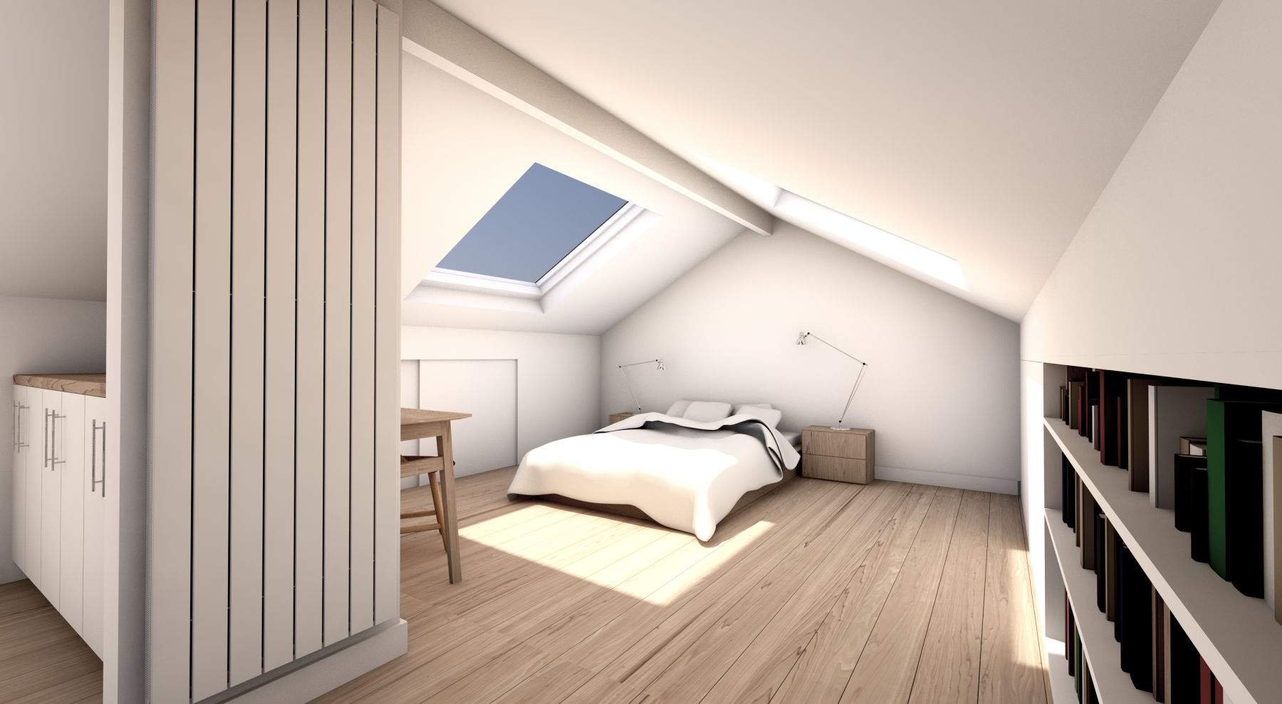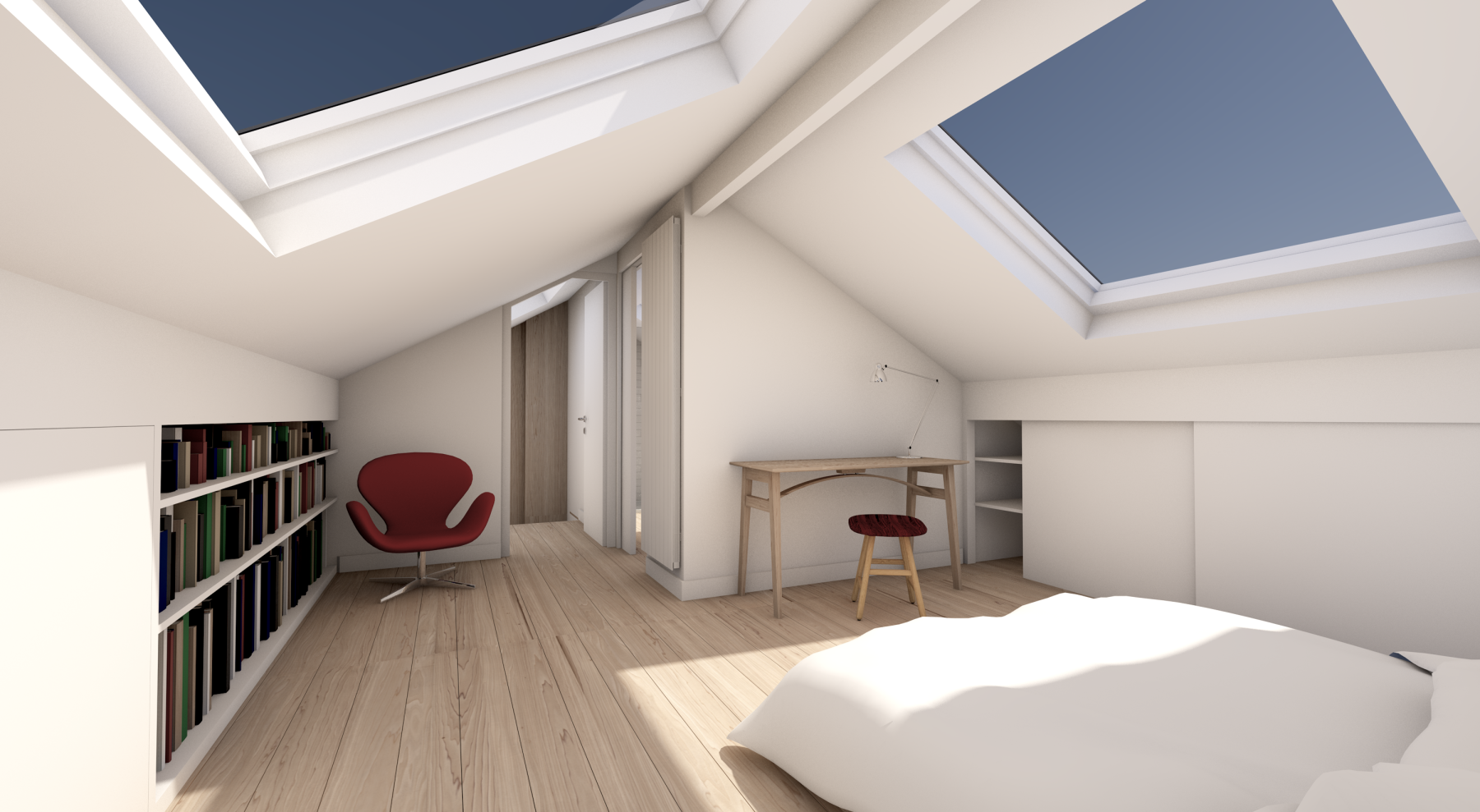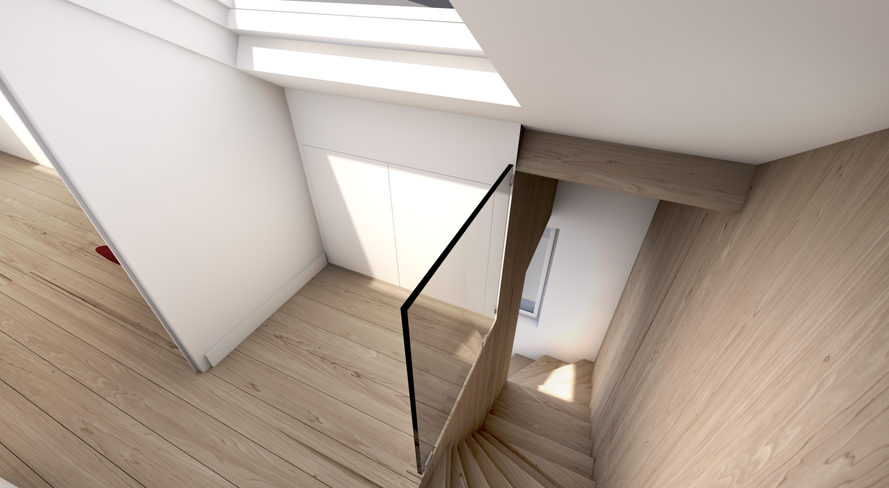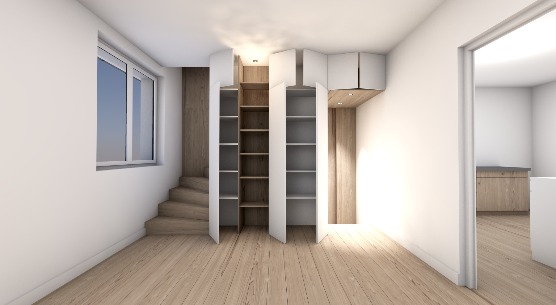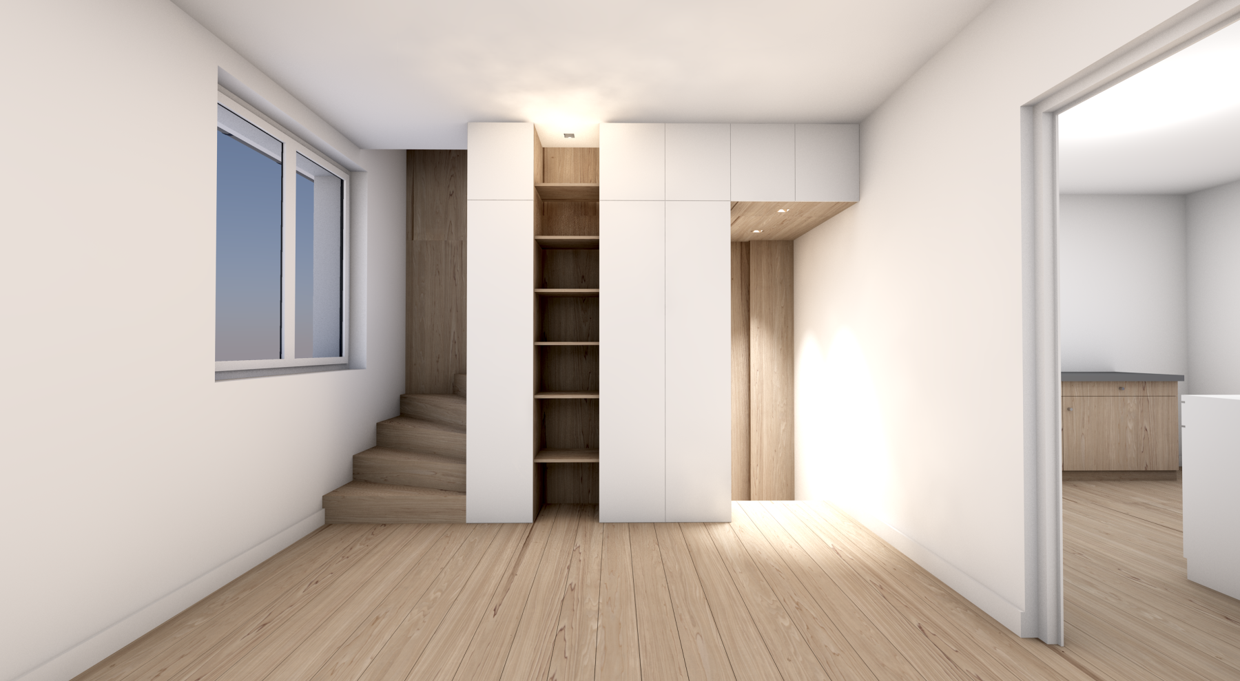 Le projet concerne la transformation d’un duplex en triplex par l’aménagement des combles et la réalisation d’un escalier avec rangements intégrés, dans le quartier pavillonnaire du Plateau, à Bagnolet.