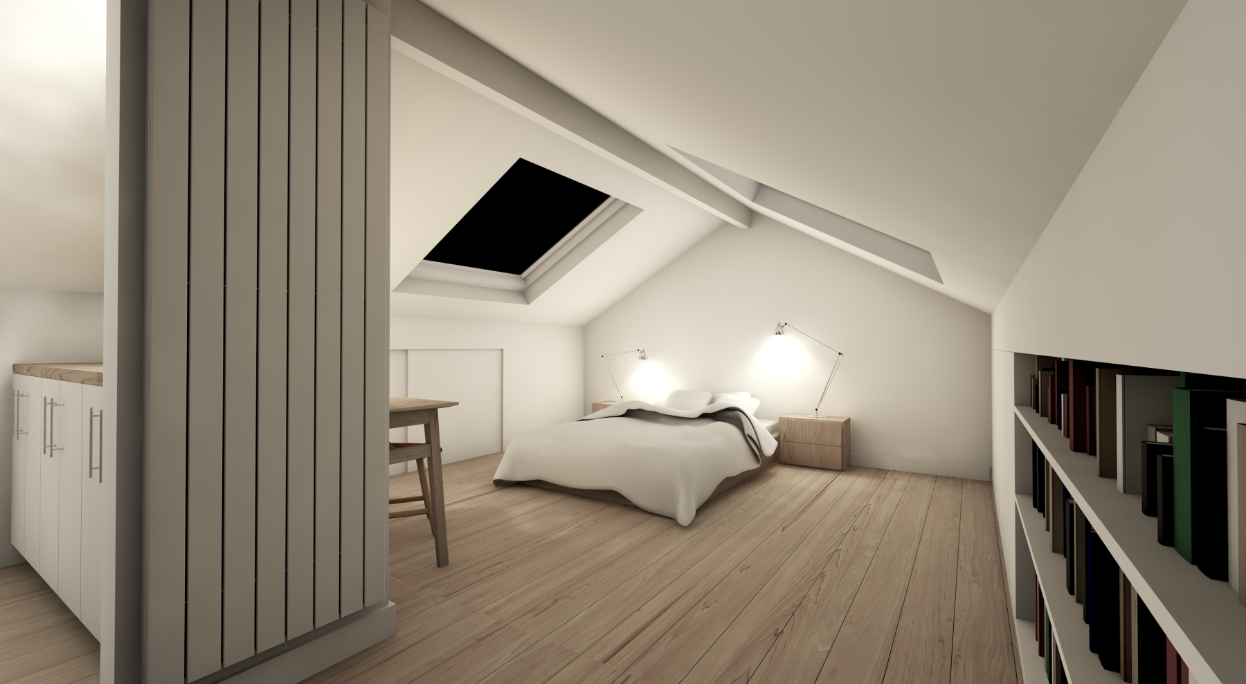 Pg Transformation d'un duplex appartement en triplex avec aménagement des combles . L Bagnolet (93) . C Privé . Mi Conception . Av DP 2015 . S 50 m² + 13 m² sous combles (Carrez) .
