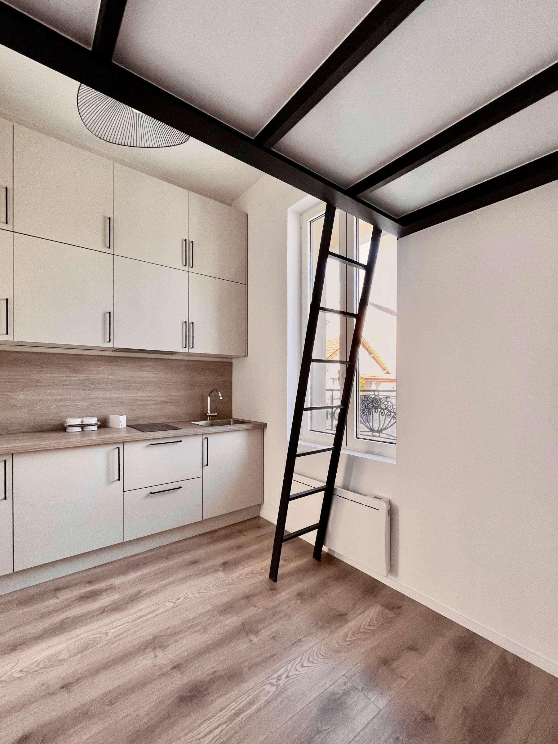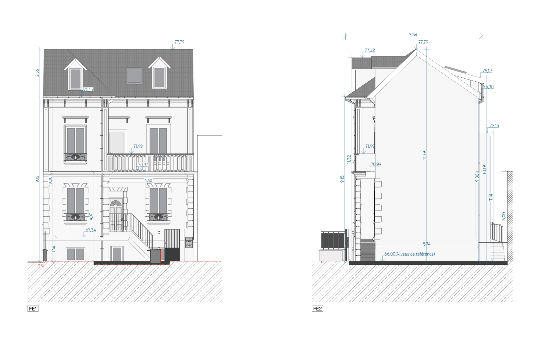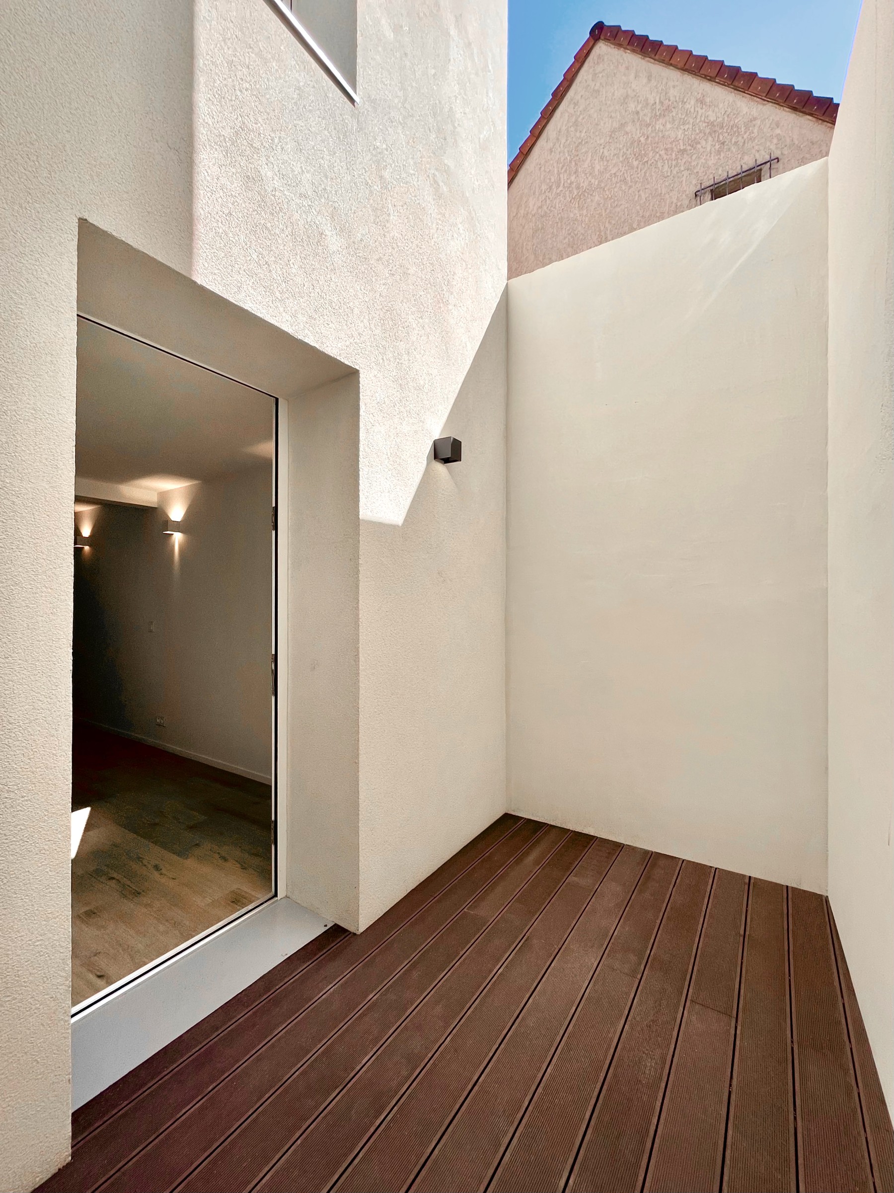 Cette bâtisse ancienne de 1920 située sur les hauteurs pavillonnaires de Nanterre, dont les logements étaient désaffectés et à l'abandon depuis plus de 10 ans, est entièrement réhabilitée pour accueillir 5 logements allant du studio au T2-3. Située sur une parcelle étroite, l'impossibilité d'extension ou de surélévation a nécessité le décaissement d'un sous-sol semi-enterré pour permettre l'amélioration des hauteurs sous-plafonds et l'aménagement qualitatifs d'espaces extérieurs. Chaque logement présente des particularités, ce qui offre à l'immeuble un large choix dans les manières d'habiter. Intimistes et lumineux, les appartements sont tous singuliers, accueillant mezzanine, grandes cuisines ou combles aménagés avec vue sur la ville.