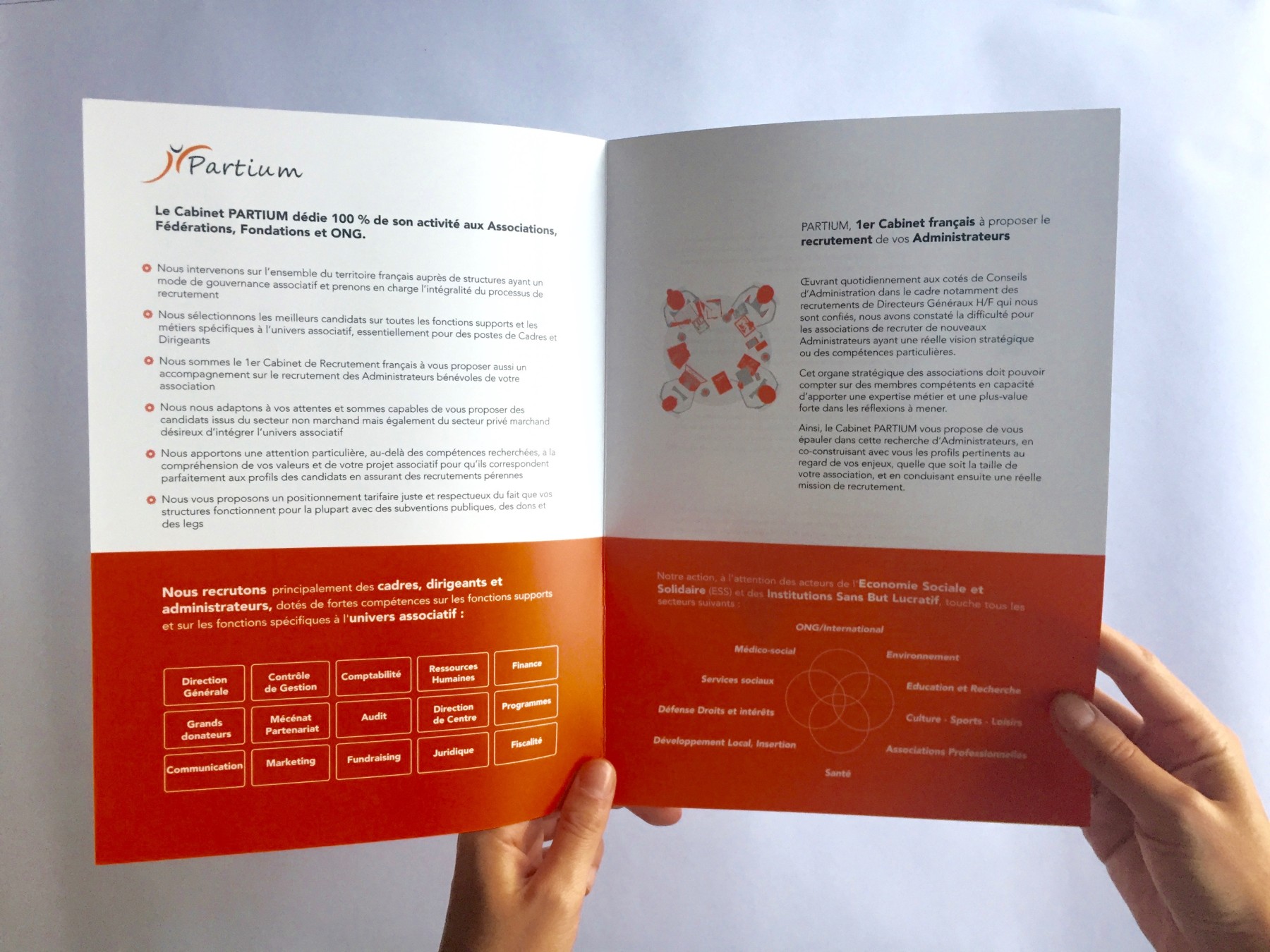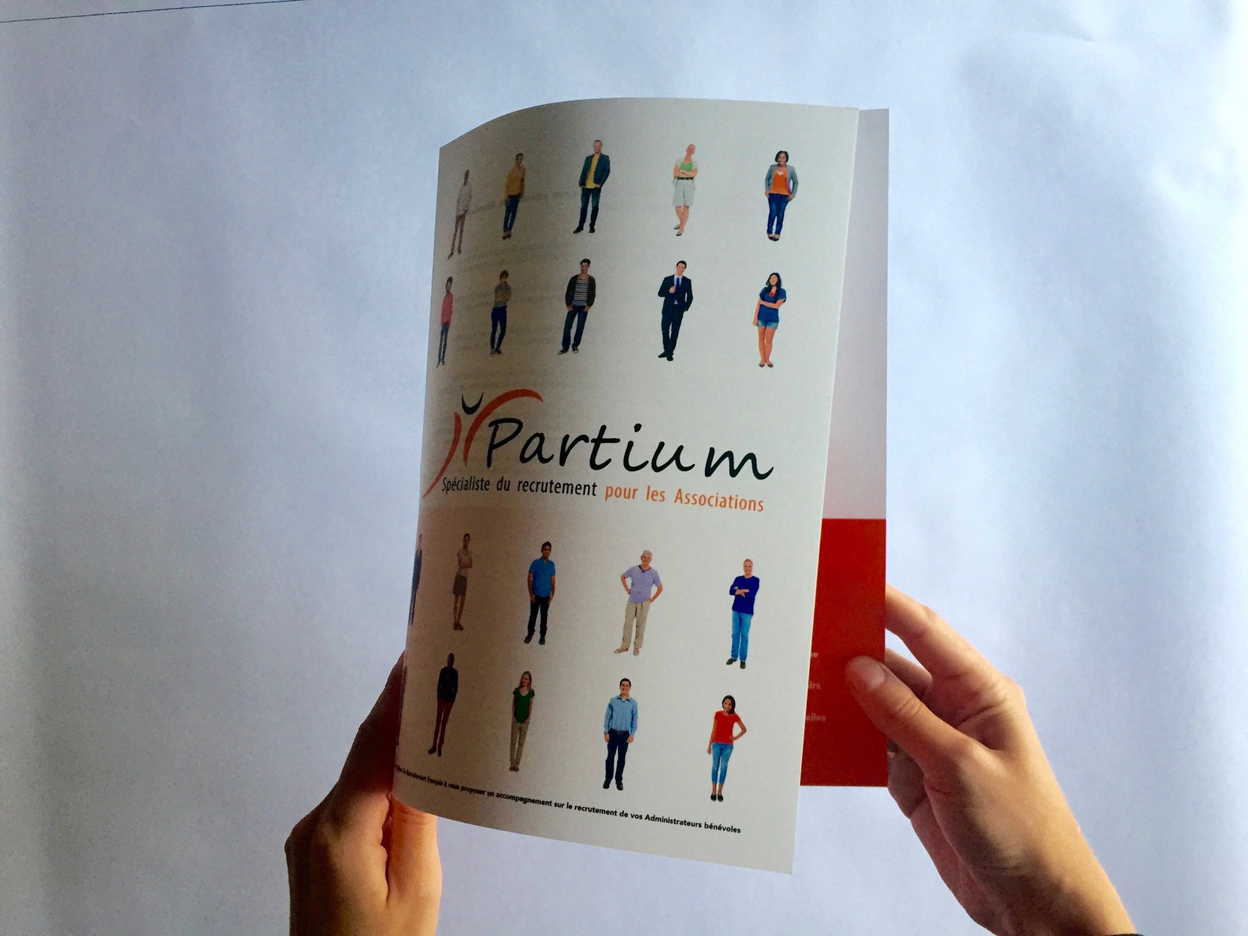 Conception des supports de communication du cabinet Partium (plaquettes, affiches, roll up grand fomat), pour le forum national des associations.