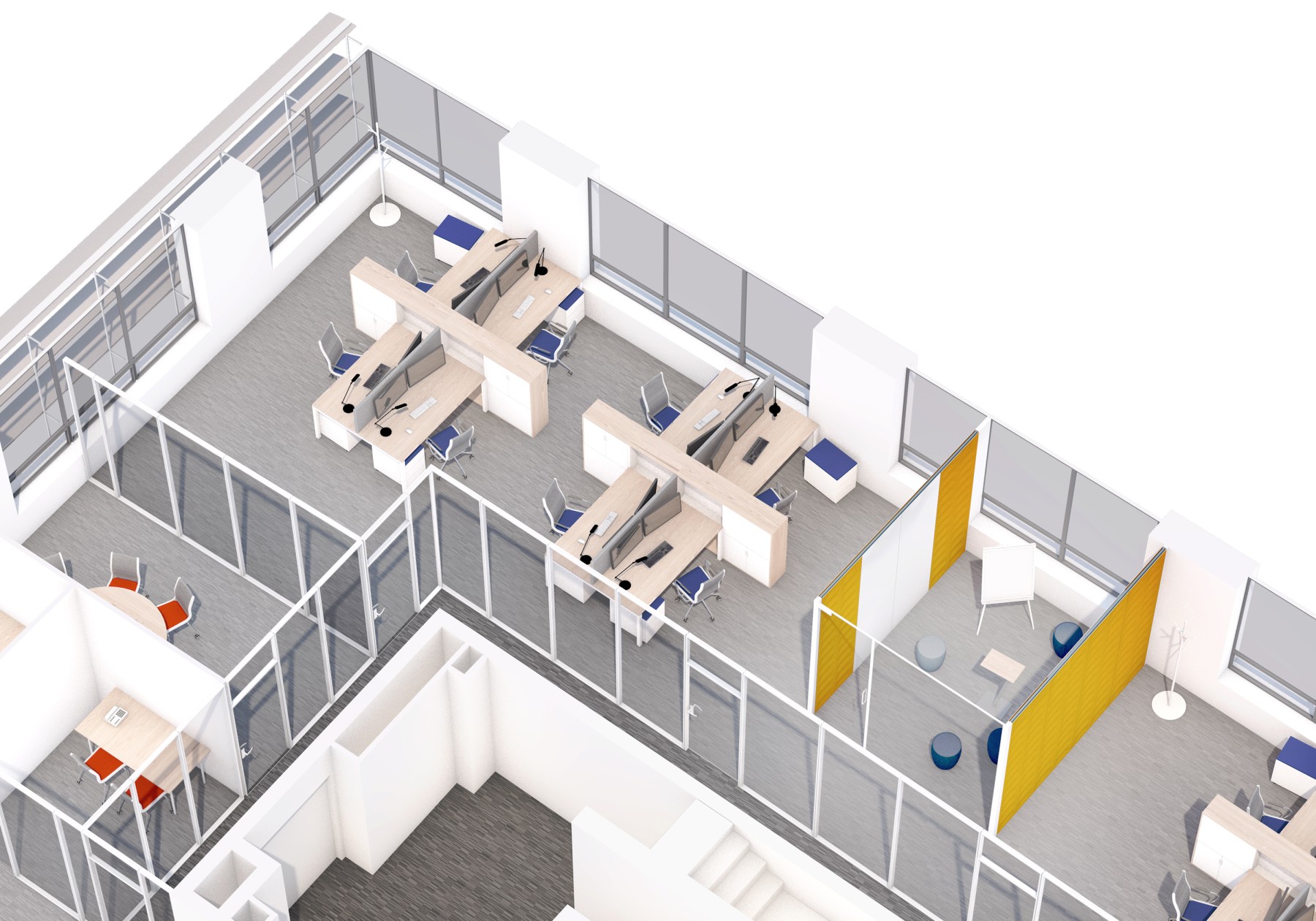 Pg Modélisation et rendus d'images d'aménagement intérieurs de plateaux de bureaux. .