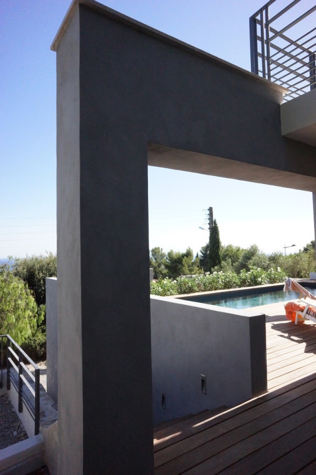 Pg Restructuration d'une maison avec garage en extension et changement de destination de l'ancien garage en cuisine d'été. Création d'une piscine et d'une terrasse face à la mer. . L Bandol . C Privé . Mi Complète . Av Livré . S 212 m² . Mt 340000€HT .