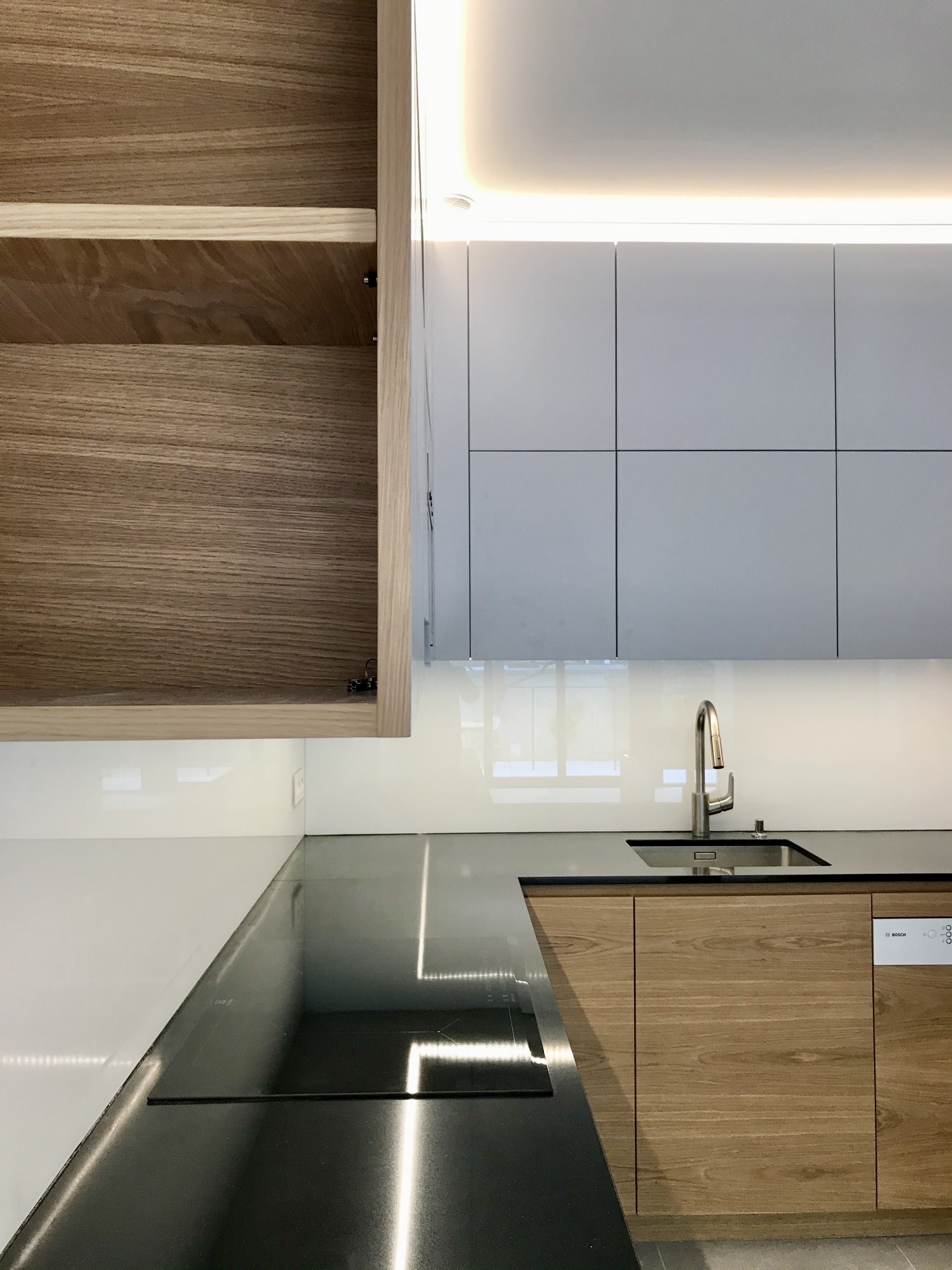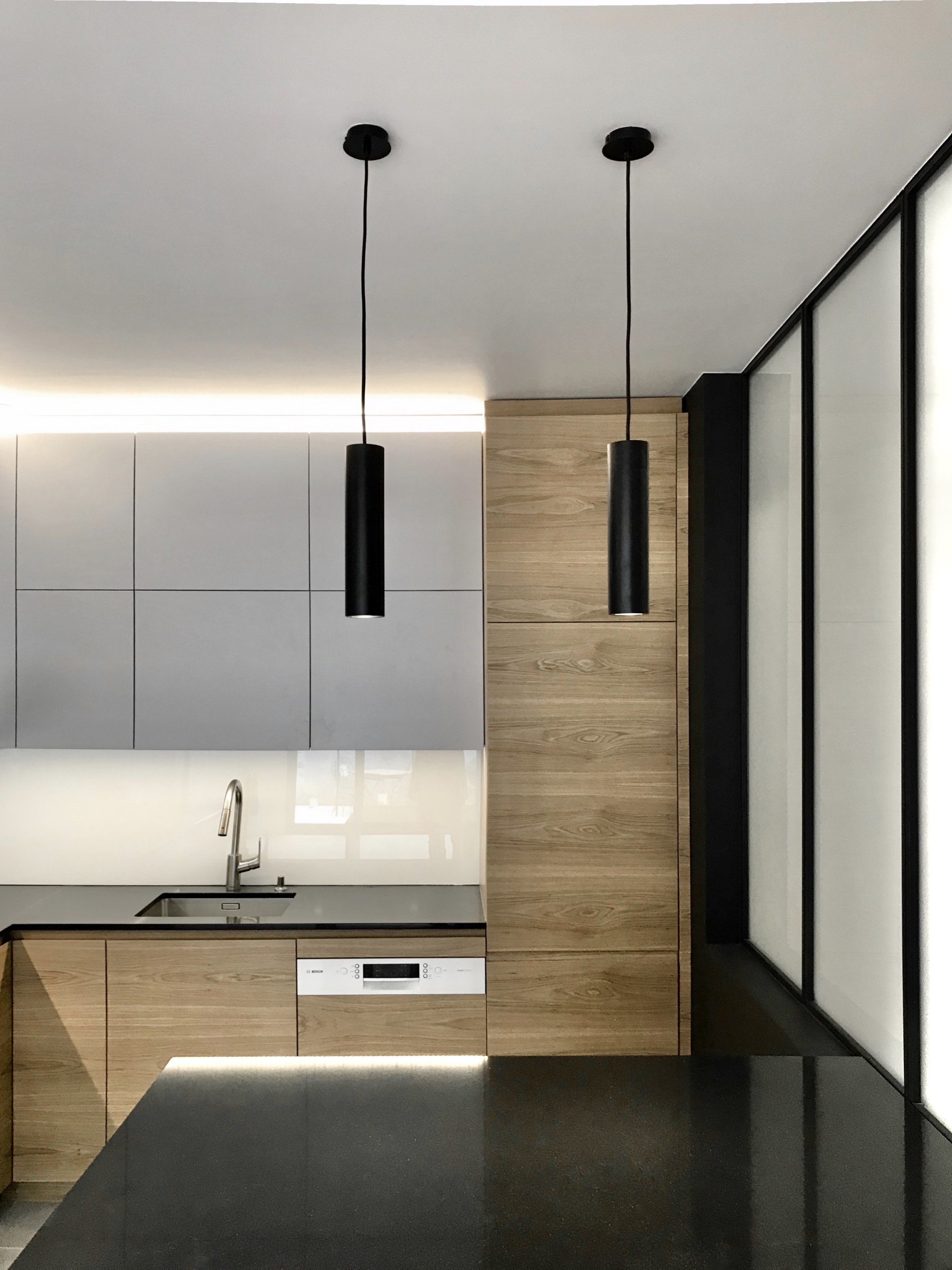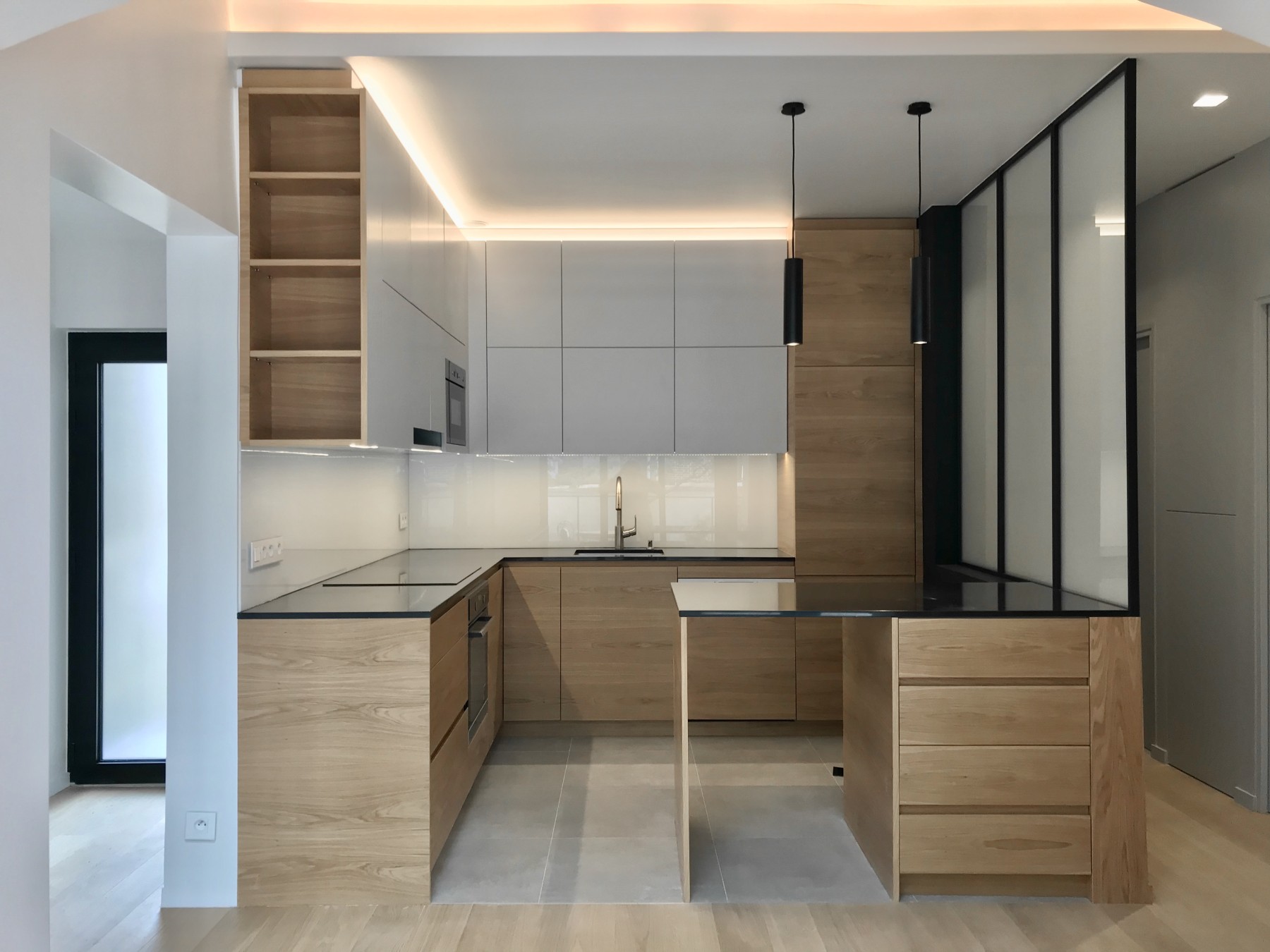 Souligner les lignes par des dispositifs lumineux intégrés, accompagner les parcours par de la lumière naturelle directe ou en second jour selon la nature des pièces, jouer sur l'opacité et la lumière traversante pour marquer les seuils sans cloisonner.