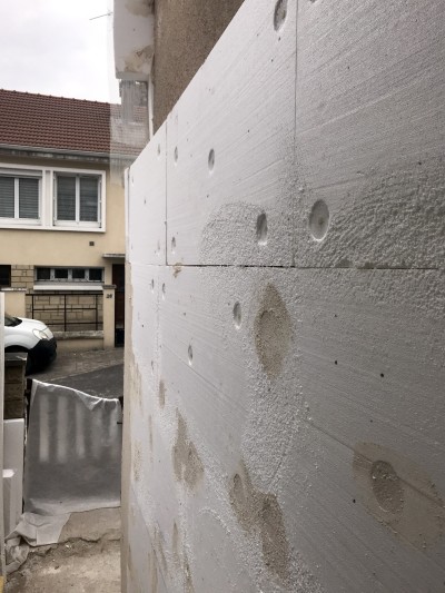 L'isolation par l'extérieur de l'édifice à permis de résoudre deux problématiques, la redéfinition de l'aspect esthétique des façades et l'amélioration énergétique de la maison.