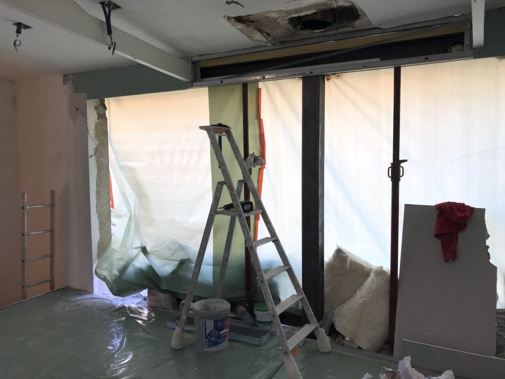 Dès le départ, les travaux ont été conditionnés par la rénovation de certains ouvrages essentiels à l'édifice tels que la reprise de fondations, la réfection complète du réseau d'eaux pluviales, la séparation des réseaux d'eaux vannes et d'eaux usées avec raccordement à l'assainissement collectif, ainsi que l'isolation extérieure de l'édifice. L'enjeu lié à ces ouvrages techniques importants a constitué un levier pour repenser l'ensemble de l'édifice et pousser sa métamorphose en une architecture contemporaine.