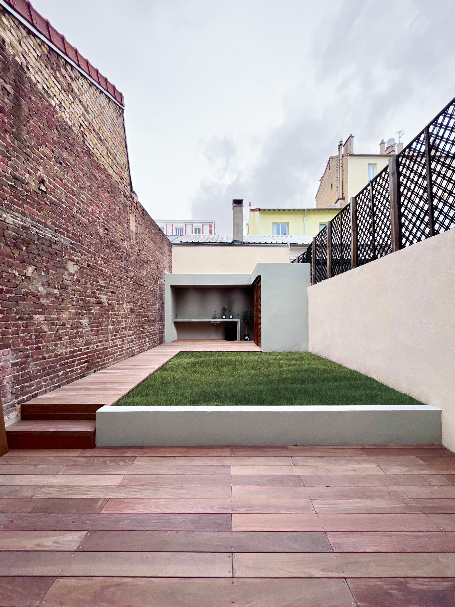 Maison de villeSurélévationextensionRéhabilitationRestructurationRénovationPg Surélévation, extension et réhabilitation complète d'une maison traversante sur 3 niveaux avec jardin et cuisine d'été en fond de parcelle. . L Suresnes . Mi Complète . Av Livré . S 150 m² .