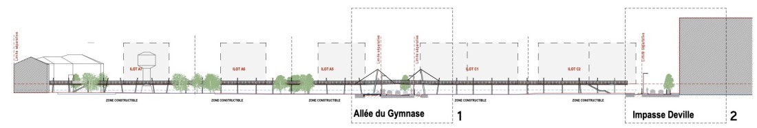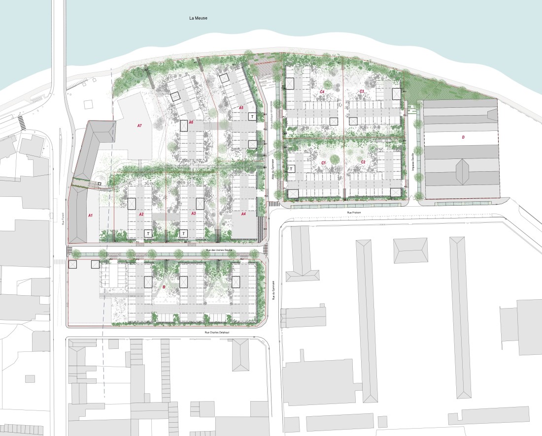 Situé le long de la Meuse, l’opération consiste à la reconversion de l’ancienne usine Deville à Charleville-Mézières. Sujet à de nombreux objectifs tel que la construction en zone inondable, la réhabilitation de deux anciens bâtiments industriels en hôtel et archive municipale ainsi que le développement de l’offre de logements et de commerces, ce projet d’aménagement se veux exemplaire dans une démarche de labélisation EcoQuartier et favorise l’économie circulaire du foncier en centre-ville.
