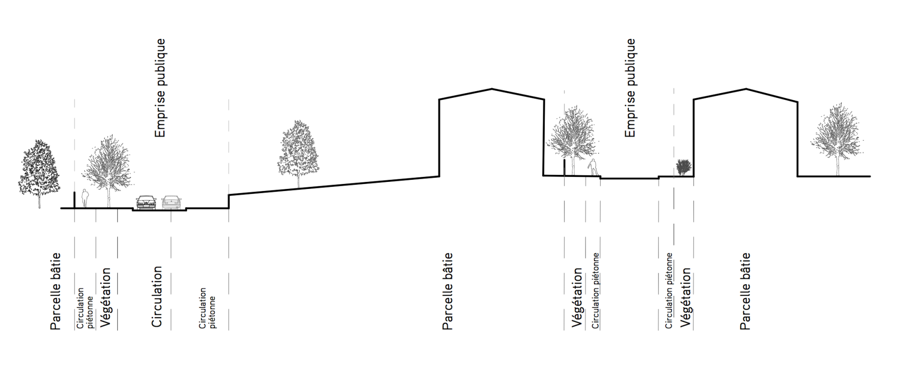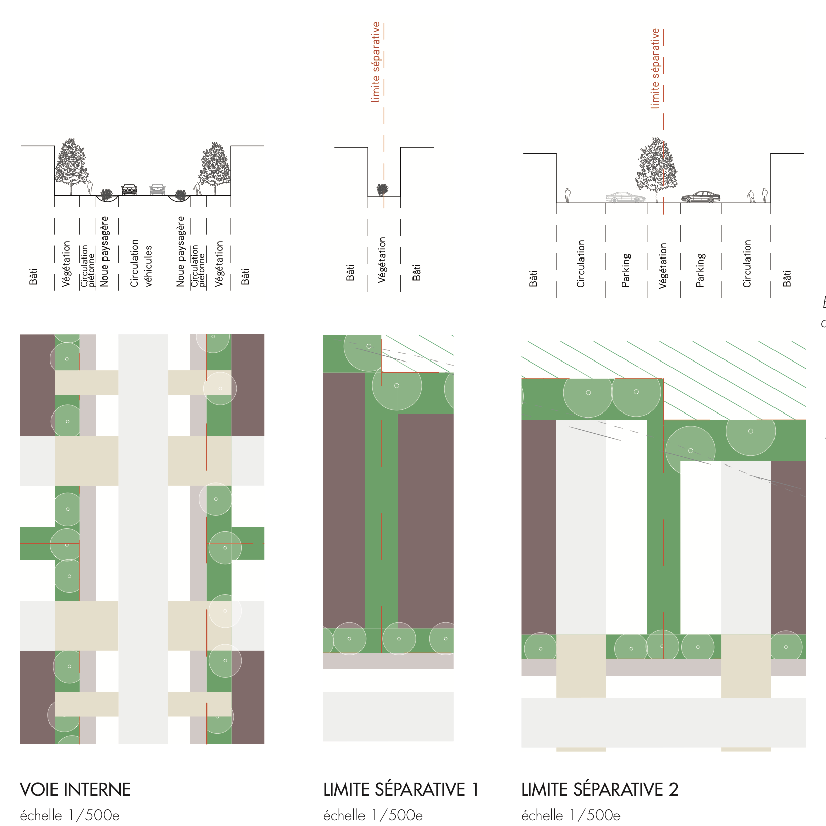 Nous définissons des schémas d’aménagement, des fiches de lots, des préconisations, des coupes de principes et une préfiguration des dispositifs réglementaires et actions publiques à prendre.